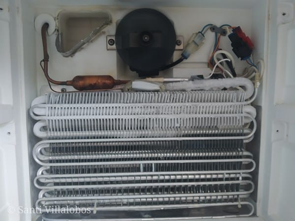 Hemos cambiado un par de condensadores, pero el problema que no enfría arriba sigue, bueno enfría un poco. Abajo en el congelador hemos quitado la tapa y se congela media parrilla, voy a ver si puedo mandarle foto.
