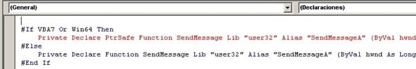 Private Declare PtrSafe Function SendMessage Lib "user32" Alias "SendMessageA" (ByVal hWnd As LongPtr, ByVal wMsg As LongPtr, ByVal wParam As LongPtr, lParam As Any) As LongPtr