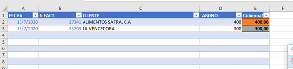 y luego todos esos abonos, se suman a su respectiva celda de la columna abonos