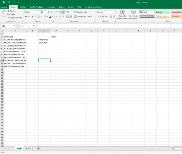 Tengo una lista de Curps necesito saber y separar de esa lista a hombres y mujeres y saber los totales de cada género.
