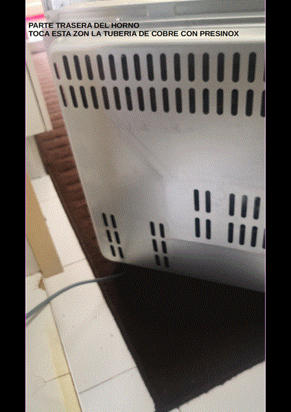 El Horno Antiguo mide de fondo 48cm. Y no tocaba la tubería de cobre conectada a la encimera de gas con tubo flexible de presinox, aunque estaba muy cerca, el nuevo horno un Zanussi mide de fondo 54cm, le hemos instalado un marco de 3.5 cm al mueble para ganar profundidad y mejor ventilación por debajo en la zona de arriba lleva una rejilla embellecedora de ventilación, este horno también es más alto lo que es la estructura las dimensiones encajan son estándar de 60cm por 60cm, el caso es que a pesar de instalar el marco el horno toca con su parte trasera la tubería del gas y el Presinox no forzado pero están pegados, ya se que la temperatura que alcanza en el exterior no es muy alta aun así lo probamos fuera del mueble y en los lados si que se calentó bastante, el Horno esta conectado a la luz con una ficha de 16 Amperios y a la misma los encendedores de la encimera de gas una Smeg, y del gas no se a tocado nada esta todo igual, nuestra pregunta es puede estar pegada la parte trasera del Horno a la tubería del gas, La parte trasera del horno, es una carcasa ventilada con cables dentro no es el fondo del horno por el exterior no alcanza temperaturas altas, pero no me quedo tranquilo así como esta, repito la tubería es de cobre conectada con un tubo flexible de presinox a la encimera de gas, ese es nuestro temor porque si es peligroso hemos pensado en ponerlo en alto encastado en un mueble al lado de la nevera.
