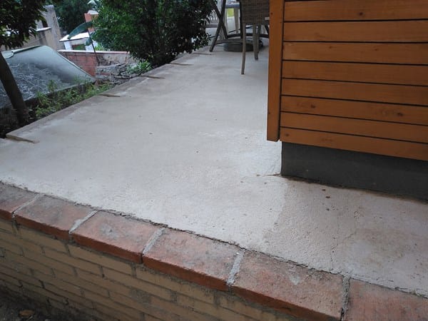 Actualmente tengo en el jardín una casa de madera de unos 4x3'5 metros encima de un pavimento de hormigón visto. La casa está sobre una base de madera de unos 20cm protegida lateralmente con tela asfáltica. Está a los cuatro vientos, aislada. El pavimento tiene una pendiente casi nula, por lo que no desagua bien cuando llueve. Quisiera encontrar una solución al tema del agua y al mismo tiempo, poner un acabado más bonito, en principio baldosa.