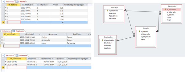 Tengo un problema que espero con su apoyo lo pueda resolver. Tengo una pequeña base de datos con las tablas que se ven en la imagen y con su relación.