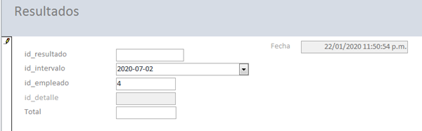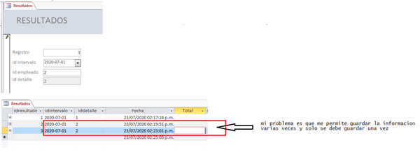 En la imagen del formulario resultados ingreso el id_empleado numero 4 y dicho id no existe sin embargo no me muestra ningún mensaje, adicionalmente si ingreso un id que si existe me permite registrarlo varias veces, cosa que no debería de ser así.