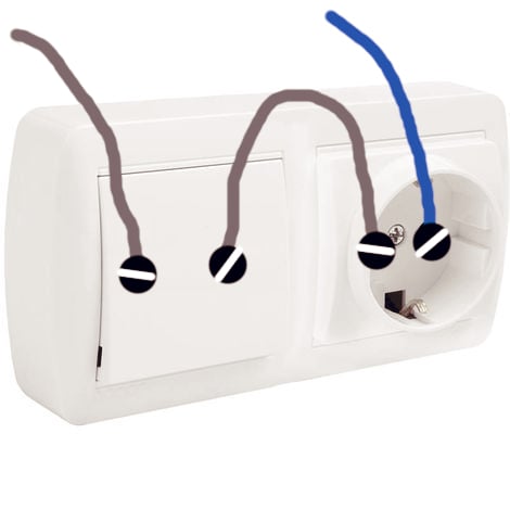 Alguien me puede dibujar el esquema con cable azul y marrón de cómo conectar un enchufe con interruptor y cometida sin porta bombillas, solo enchufe y interruptor, el enchufe lleva toma tierra es de los grandes .