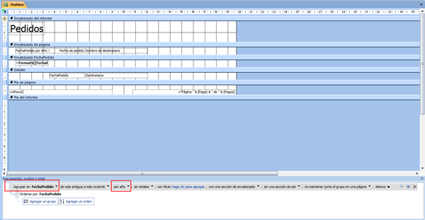 Agrupar un informe por el año de una fecha.