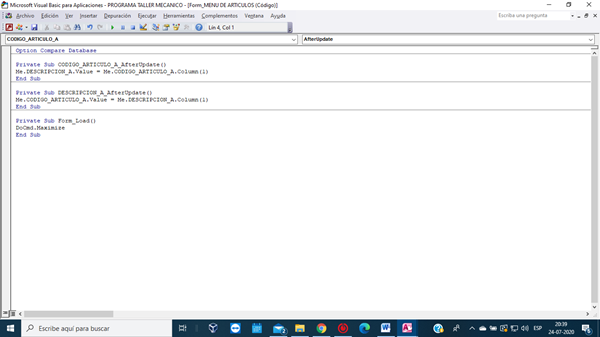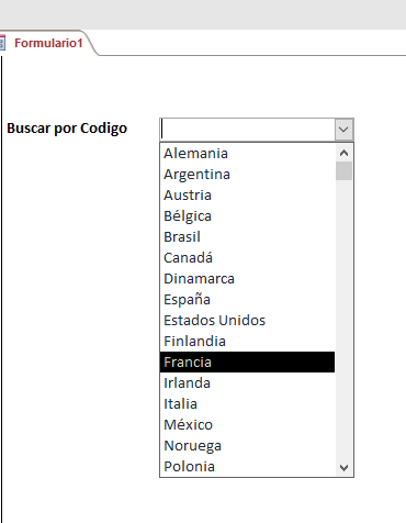 También agregue un cuadro de texto que me indica la cantidad de artículos que he comprado basándome en el código seleccionado en el cuadro combinado y un botón que al hacer ckick me busca un formulario FC (sin subformulario)