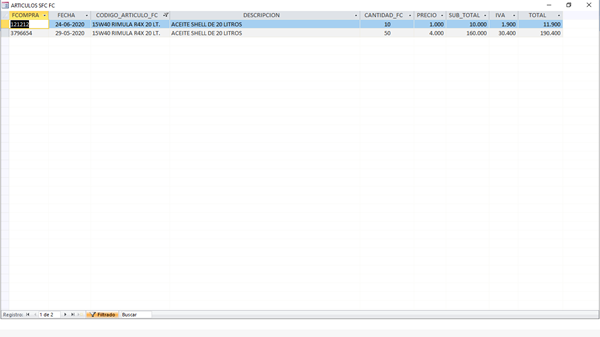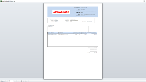 Y un informe con subinforme muy parecido al subformulario de ingreso de facturas de compras.