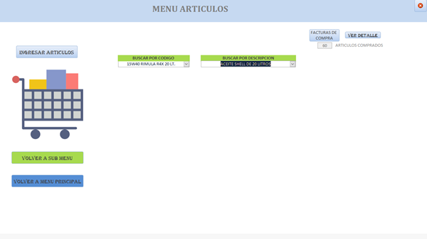 Para consultar a quienes y cuantos le he comprado dichos artículos. En este formulario agregue dos cuadros combinados uno para buscar por código de articulo y el otro para buscar por descripción de articulo ( ambos están vinculados con código VBA.