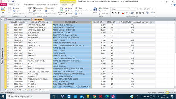 También tengo una tabla ARTICULOS donde se almacena la cantidad y el stock,