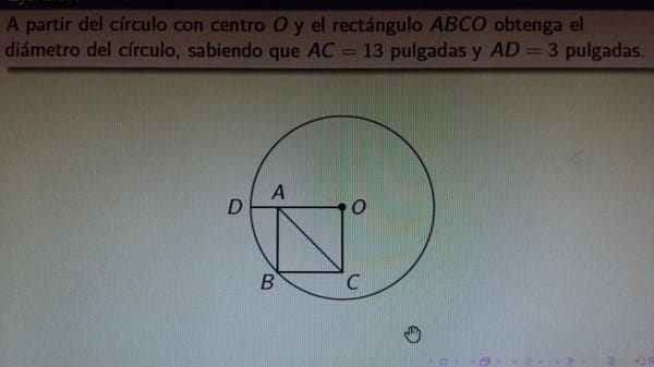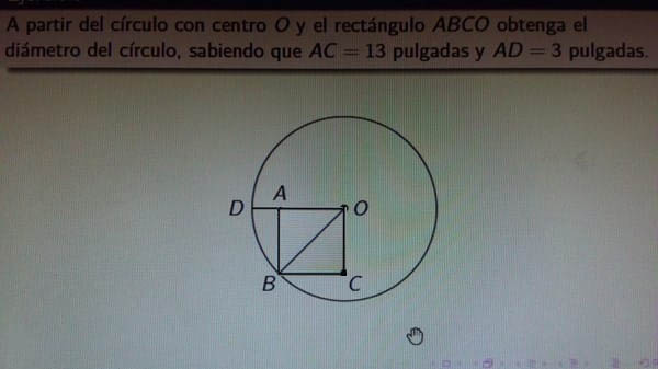 el diámetro del círculo, sabiendo que AC=13 pulgadas y AD=3 pulgadas. Solo quiero que me digan si están bien o mal el ejercicio, gracias.