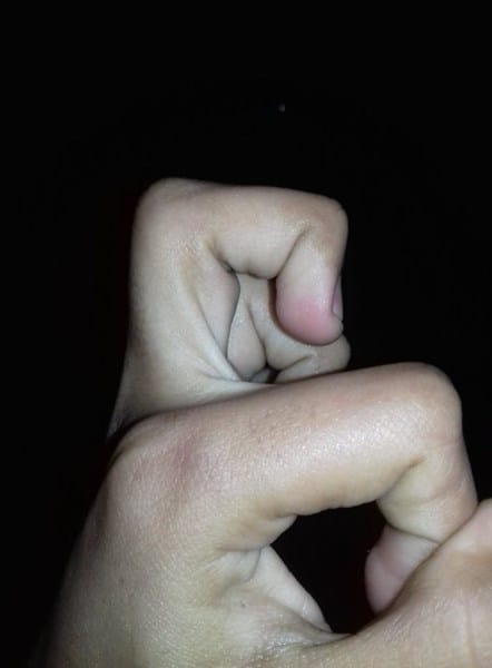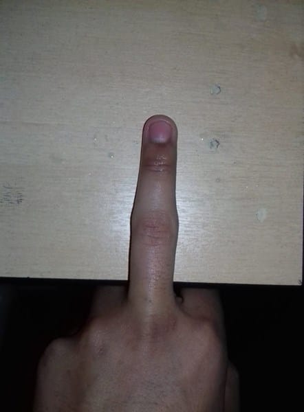Resulta que hace más o menos un año, mientras entrenaba intente hacer planchas con los dedos sin tener ninguna experiencia alguna. Lo que resulto en que a la segunda repetición cayera al suelo y lesionarme el dedo. No fui al medico pues pensé que la hinchazón en el dedo bajaría, pero hasta ahora han pasado casi 13 meses de la lesión y aún no puedo doblar el dedo completamente, además de formarse una protuberancia a los lados que ahora es un poco difícil de ver a simple vista pero si que se nota al tocarlo ( adjunto foto) Es bastante molesto a la hora de entrenar en el saco y cuando me pongo los guantes de box, sobretodo a la hora de tirar un golpe con potencia, pues no puedo cerrar bien el puño-