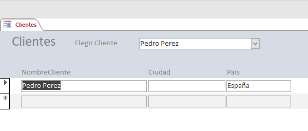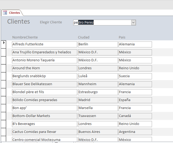Automáticamente me pone el primer nombre del cliente que empiece por p. Si le añado una e