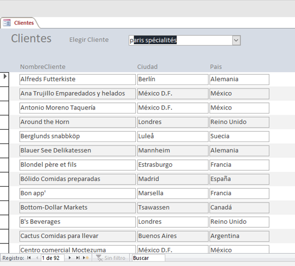 Me pone el primer registro que el nombre del cliente empiece por PE, y si en ese momento pulso Enter me "muestra" ese registro