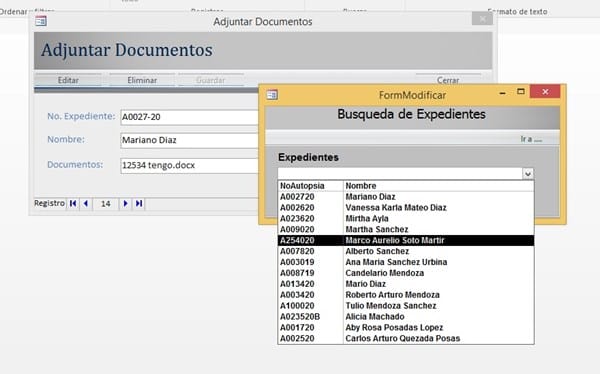 el formulario FormModificar donde hay un cuadro combinado que tiene como origen la tabla principal expedientes.. cuando se elige un expediente y luego se presiona el botón "Ir a..."