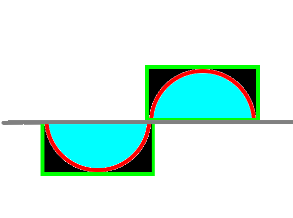 O sea que si dibujo un rectángulo dentro de la montaña, ¿las partes que quedan libres del rectángulo son las que forman el promedio del valor eficaz?