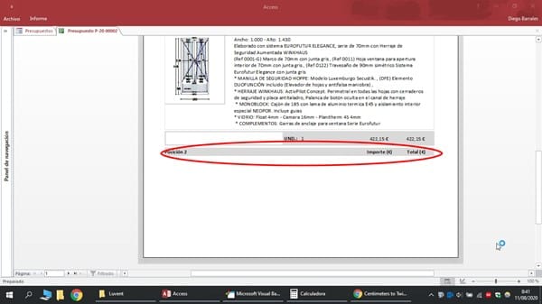 Tengo un problema con un informe para sacar un presupuesto. Una sección me lo separa entre dos páginas. En esta imagen podéis ver el encabezado: