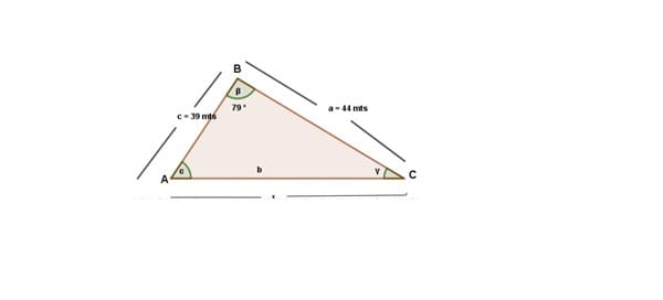A la medida del lado " AC " la saque por el teorema del coseno y el resultado que me da es de