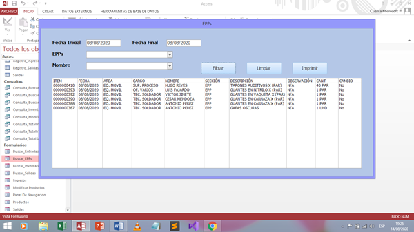 SQL = "SELECT Consulta_Buscar_EPP.ITEM, Consulta_Buscar_EPP.FECHA, Consulta_Buscar_EPP.AREA, Consulta_Buscar_EPP.CARGO, Consulta_Buscar_EPP.NOMBRE, Consulta_Buscar_EPP.SECCIÓN, Consulta_Buscar_EPP.DESCRIPCIÓN, Consulta_Buscar_EPP.OBSERVACIÓN, Consulta_Buscar_EPP.CANT, Consulta_Buscar_EPP.CAMBIO "