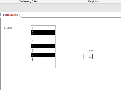 Cuando en el formulario, en el cuadro de lista Lista6 elijo algunos valores