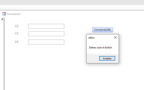 Tengo un formulario de access con su respectiva botón para cerrar el cual evalúa los campos antes de cerrar, funciona perfecto, el problema es cuando el usuario decide cerrar el formulario con la combinación de teclado alt + f4, necesito saber cómo evitar eso...
