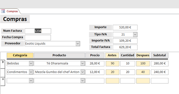 Tengo un formulario "FacturaCompra" y un subformulario "LineaFactura" y en el subfformulario agrego los artículos a vender y en uno de los campos esta el sub_total el cual se actualiza al ir llenado los campos de cantidad, descuento, etc., pero en el sub_total_principal no se cargue al ir llenando estos campos, solo lo hace al finalizar la línea y me gustaría que se cargue al momento de ir llenando cada campo para ir viendo los montos finales si cuadran y cuando presione el disquete de guardar se actualice todo.