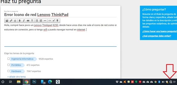 Compré hace poco un Lenovo Thinkpad X250, desde hace unos días me sale el icono de red como si estuviera sin conexión, pero si tengo wifi y puedo navegar normal en internet, tiene instalado windows 10 home X64