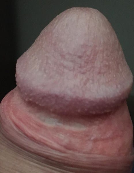 Tengo como una grieta de color blanco, situada antes de llegar al glande del pene. No sé cuanto tiempo llevo con ella sinceramente, pero yo diría años. No me pica ni me escuece por ello nunca le he dado importancia.