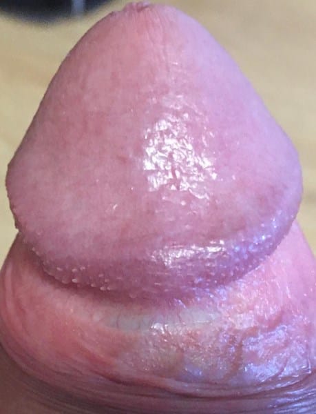 En flacidez casi ni se aprecia, (a no ser que retire mucho el pellejo hacia atrás) es más apreciable a medida que el pene se pone erecto. Si toco esa zona parece una especie de desgarro de la piel, como un corte de la piel, es la sensación que me da.