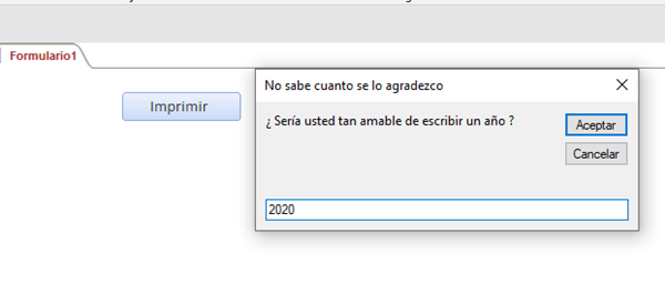 El problema que tengo que es para este informe al querer imprimirlo como está dentro del formulario de navegación imprime la ventana del formulario de navegación y no sólo el formulario que es lo que yo deseo, pensé entonces en al hacer click de mi botón imprimir ir al informe en otra ventana, pero en ese caso me vuelve a pedir el parámetro de año, cosa que no deseo hacer dos veces.
