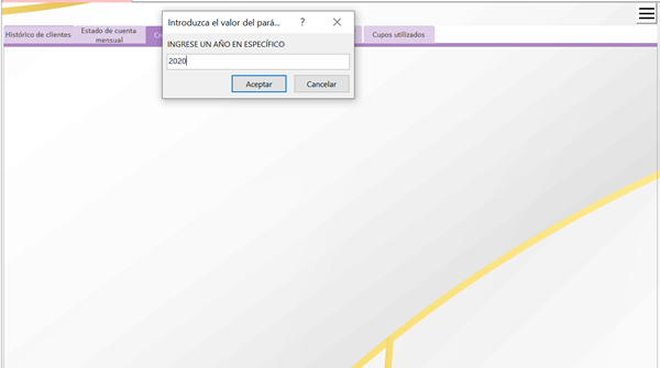 Tengo un formulario de navegación F-NavegacionInformes, donde tengo diferentes informes, algunos con parámetros, pero hay uno de ellos que tiene un solo parámetro que en este caso es ingresar un Año, este parámetro viene desde una consulta, como solo es eso no creé el parámetro en un formulario.