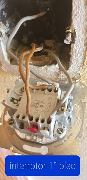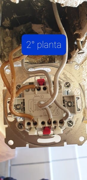 Estoy cambiando los interruptores de toda la casa por unos nuevos, pero el mecanismo no es igual y la he liado. Tengo una escalera que va a tres plantas, en cada planta hay un interruptor y una luz; desde cualquiera de los tres interruptores se deben apagar y encender las tres luces a la vez. Pero en la planta baja solo hay 3 cables, en la planta 1 4 cables y en la planta 2 4 cables. He probado todas las combinaciones pero cuando se encienden unas bombillas se apaga la otra. Os mando las fotos de como están en este momento cada interruptor. Por favor ayudadme porque tengo la escalera a oscuras. Muchas gracias