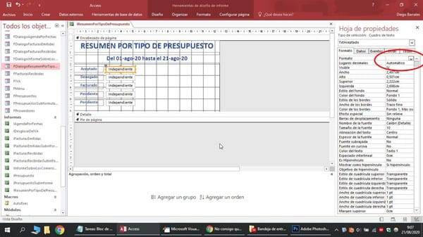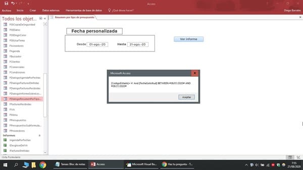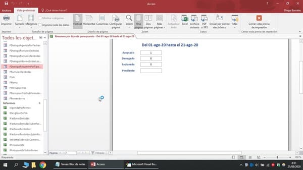 Estoy creando un informe resumen, en el que no quiero utilizar una consulta de origen, es decir, un informe independiente, para mostrar un conteo de cuatro categorías, según la fecha elegida por el usuario en un formulario diálogo.
