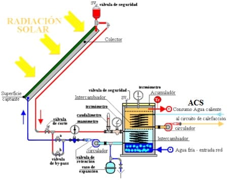 Tengo un sistema de acs que consta de 6 captadores que tienen un circuito con bomba de recirculacion desde los captadores a un intercambiador de calor. Otro circuito desde el intercambiador de calos a acumulador también con su bomba de recirculacion. Y un último circuito desde el acumulador hasta los termos de apollo de la vivienda también con su bomba de recirculacion.