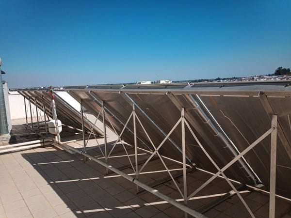 Esta instalación está ubicada en Sevilla y esto ocurre durante todo el año. Los captadores llegan a alcanzar 130°C expulsando por las válvulas de seguridad por que no recircula el agua.