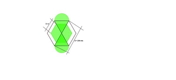 Equiláteros de la figura, me dan como dato una diagonal del mismo que es igual a 239 metros.
