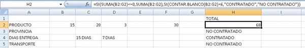 Por ejemplo, en la fila 4 al haber en las columnas C y D datos, como puedo hacer para que si hay algún dato (texto) en alguna de las columnas entre B y G ponga "CONTRATADO" y si no hay ningún dato en esas columnas ponga "NO CONTRATADO".