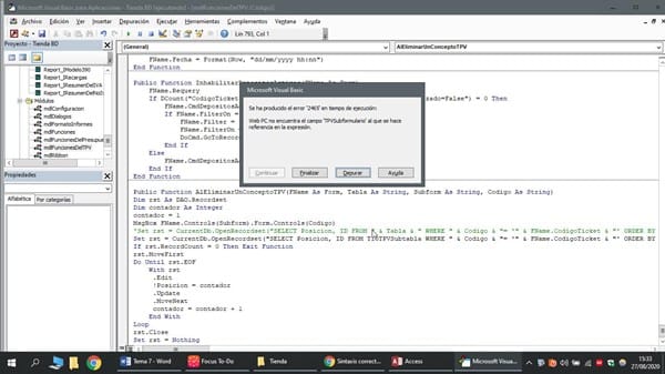 Set rst = CurrentDb.OpenRecordset("SELECT Posicion, ID FROM " & Tabla & " WHERE CodigoPresupuesto = '" & Forms(Formulario).Controls(Codigo) & "' ORDER BY ID")