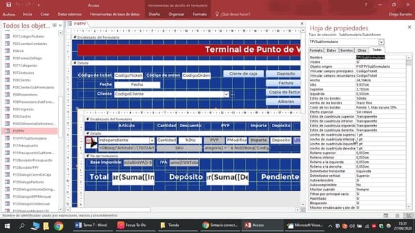 En la llamada que hago desde el formulario, tengo que poner el nombre del formulario principal; porque si no el del subformulario, me da error.