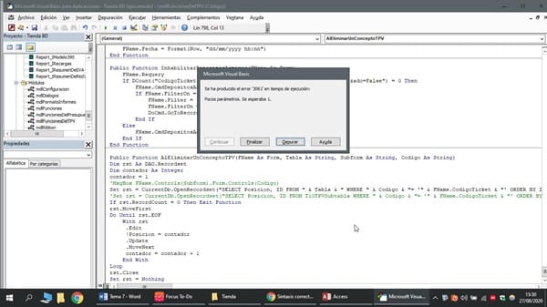 Public Function AlEliminarUnConceptoTPV(FName As Form) Dim rst As DAO.Recordset Dim contador As Integer contador = 1 Set rst = CurrentDb.OpenRecordset("SELECT Posicion, ID FROM T10TPVSubtabla WHERE CodigoTicket = '" & FName.CodigoTicket & "' ORDER BY ID") If rst.RecordCount = 0 Then Exit Function rst.MoveFirst Do Until rst.EOF With rst .Edit !Posicion = contador .Update .MoveNext contador = contador + 1 End With Loop rst.Close Set rst = Nothing End Function