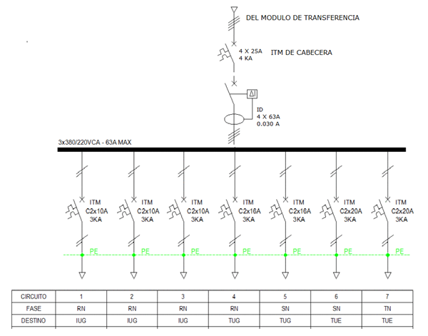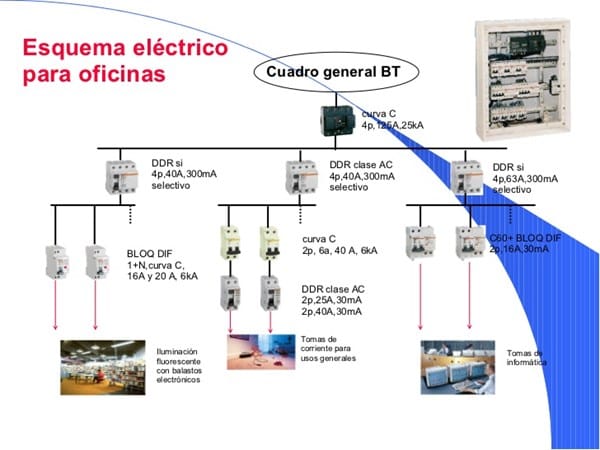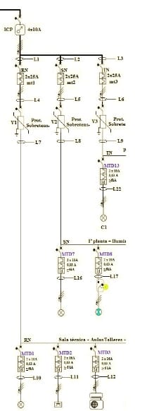Esquema unifilar de un cuadro eléctrico de una oficina