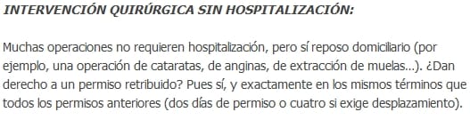 Accidente o enfermedad grave de parientes: en estos casos, requiera o no hospitalización, se origina un permiso de dos días. El problema aquí es que interpretamos por debido a su carácter indeterminado. En estos casos, debemos estar a la circunstancias de cada caso concreto para poder determinar con criterios médicos la gravedad del estado del pariente en cuestión. A título meramente ejemplificativo se ha considerado enfermedad grave la colocación de un marcapasos y no se ha reconocido el derecho al permiso, entre otros, por la operación de cataratas o la extracción de tres muelas.