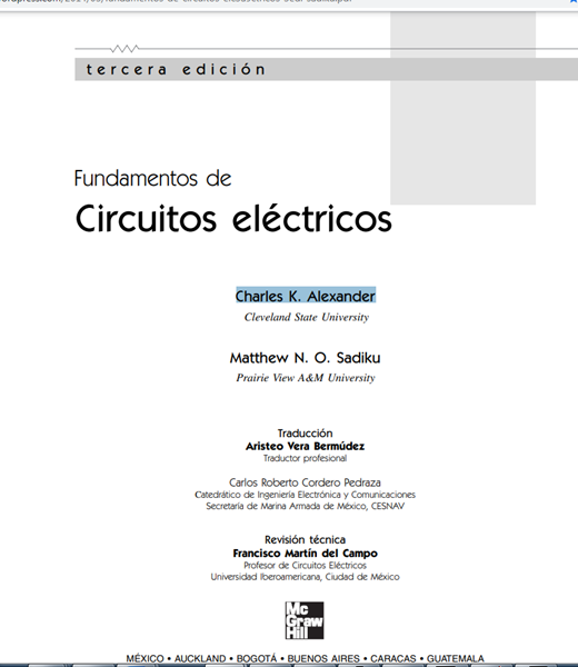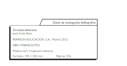 Mora, J.F. (2012). Circuitos eléctricos. PEARSON EDUCACIÓN S.A.