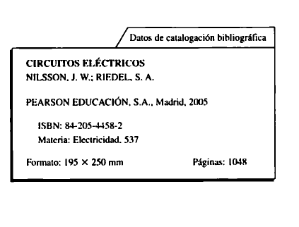 Nilsson, J.W., y Riedel S.A. (2005). CIRCUITOS ELÉCTRICOS (7ma ed). PEARSON EDUCACIÓN S.A.