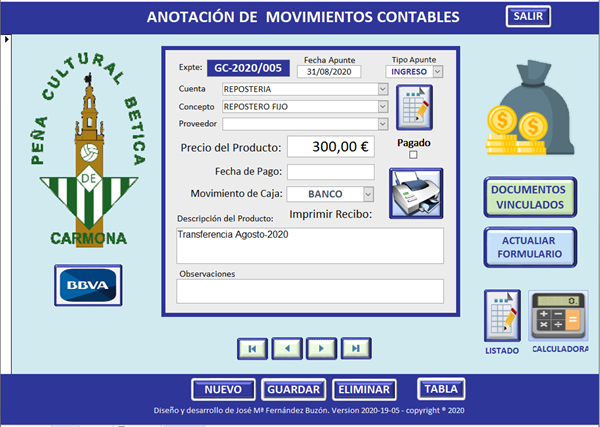 En el formulario se van anotando los movimientos contables, tanto de ingresos como de gastos,