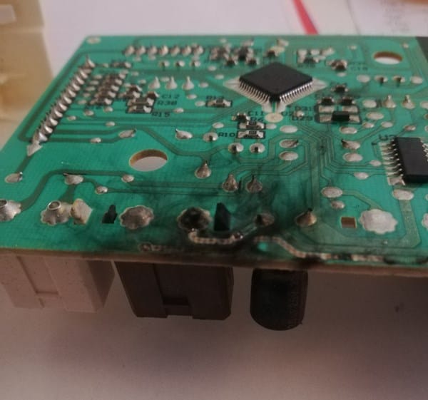 Tengo una secadora que no enciende y siguiendo varios hilos del foro he conseguido desmontar la placa que lleva tras los botones y hay un par de piezas que están quemadas.
