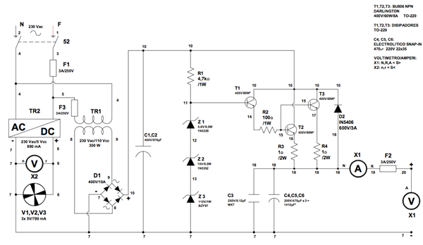 Estoy intentando fabricar una fuente de alimentación casera con una salida de 125 Vcc. La intensidad con unos 3 amperios como mucho me valdría. Preguntado, me aconsejaron que montara el esquema que adjunto. Cuando por primera vez puse en funcionamiento la fuente se quemo la resistencia R4. ¿Me podrias echar una mano?. ¿Qué debería de modificar para solucionar el problema?.