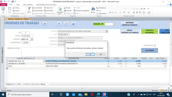 Pero el campo clave de la tabla FACTURA_VENTAS y FACTURA_VENTAS_DETALLES con el que se relaciona son por el campo número de factura ™FVENTA™ y no por el campo fecha y en las tablas ORDENES_DE_TRABAJO y ORDENES_DE_TRABAJO_DETALLE se relacionan con el campo número de orden ™OT™