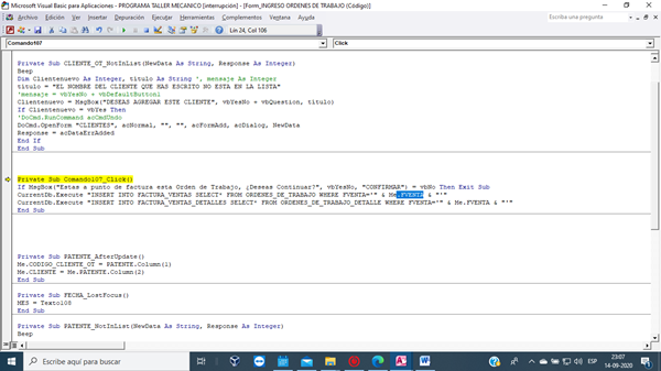 If MsgBox("Estas a punto de factura esta Orden de Trabajo, ¿Deseas Continuar?", vbYesNo, "CONFIRMAR") = vbNo Then Exit Sub