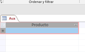 Esta tabla Aux, cuando se "rellene", será el origen de la fila del combinado producto del subformulario DetalleCompra